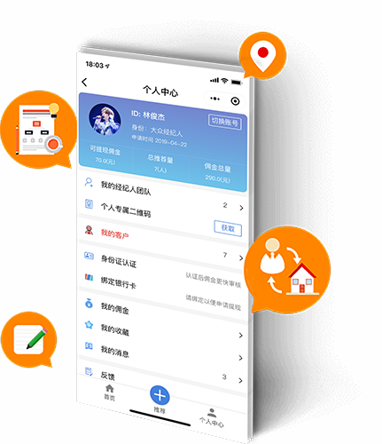 业绩提成信息一目了然。经纪人可以看到自己团队人员的业绩对比,发挥其主观能动性。